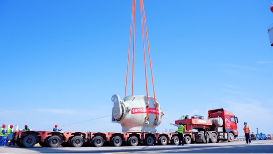 与球阀相伴的,还有东方汽轮机为江苏金坛盐穴压缩空气储能发电二期项目提供的压气储能核心设备——自主研制的世界最先进、容量最大的350兆瓦等级非补燃压缩空气透平膨胀机。它们在东方大件物流团队的护送下一路同行,并最终奔赴各自的使命战场。