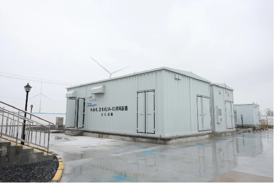 该产品应用于江苏盐城大丰4.5兆瓦低频风机送出示范项目,是电力输送领域世界首个铁磁型旋转变频系统,该设备安装在海上风电集群的并网升压站内,可实现海上风电稳定并网。