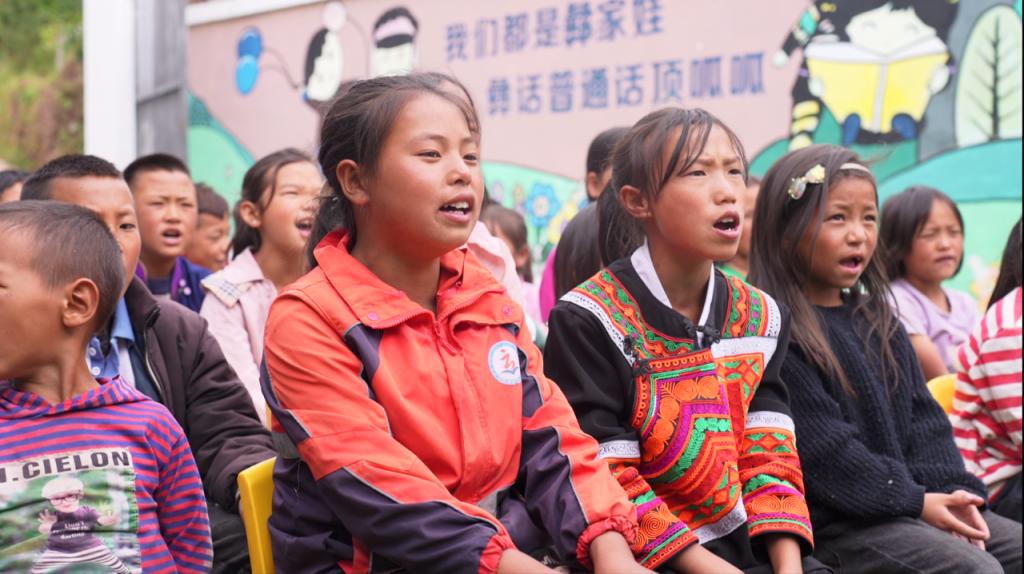 在正式歌曲教学前,孩子们用真挚的眼神期待老师的授课。课堂中,音乐老师为同学们逐字逐句地朗读歌词,深情演唱给孩子们听,同时耐心地向孩子们讲解其含义。在助教团的悉心引导下,孩子们逐渐记住了歌词、掌握了旋律,喜悦之情溢于言表。音乐课堂通过《我和我的祖国》向孩子们传递了积极向上的力量,丰富了孩子们的精神世界。